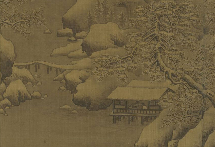 Zhu Derun’s style was deeply influenced by the "Li-Guo" school, characterized by intricate "crab-claw" branches and dramatic rock formations. The painting depicts a lone scholar returning home through a frigid, mist-covered river. Every stroke conveys a sense of intellectual solitude and harmony with nature.