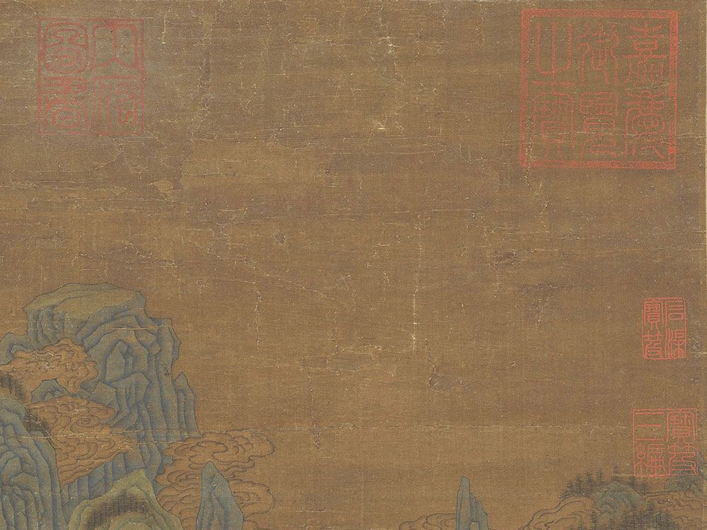 The "S-curve" also creates a sense of rhythm. The repetition of mountain folds and the alternating patches of blue and green create a visual melody. This musicality in painting was highly prized in the Tang Dynasty, where art, poetry, and music were seen as inseparable forms of expression.